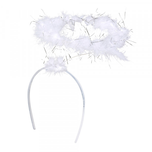 We suggest complementing the angelic outfit with a fluffy white-and-silver halo.